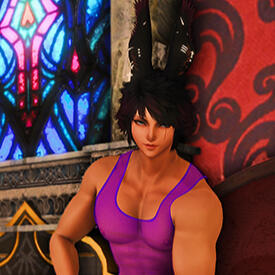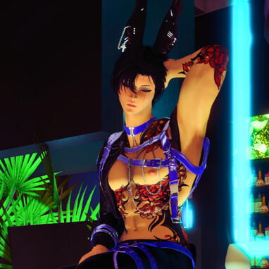 Vex Cyser is a Seeker of the Sun, supposedly born and raised in Ul'dah. Vex has no memory of this. Vex has only been told what he believes is to be what has become of his upbringing. Ever since the young age of 8, He has been roaming the streets of Ul'dah, thieving and being Knifing to eat, fighting to survive the next day. He's lived the life of the streets all until his 23rd year of birth, Where he was able to hitch an airship ride, Onto the decks of Limsa Lominsa, where he was able to take up the art of dancing from his mentor, Nashmeira. After taking up his desire to be a dancer, he takes his breaks from working with the dancing troupe, By using his unique set of skills, working as an escort in several different locations, offering his services in exchange for gil. He is flirty, somewhat shy, and likes to cop an attitude if you get on his bad side, And that's what gets him to do so well when on a hunt for the spicier times. Only there for a good time, not a long time. This lifestyle has become a part of Vex's daily life, Working on his arts during the day, And living the Eorzean nightlife as his other half. Vex decides after one of his shifts at one of his few clubs he works at, that he would visit a nearby bar, right across the street from the club. As he walked in, He decided to order a drink and have a seat, spent from another successful shift before resuming his training in the art of dancing with his mentor. As he enjoys his drink, he suddenly feels a sharp pain in his temple, as he looks to the bartender, a smirk appearing across their face as his vision fades to black. A few hours later, Vex woke up in an abandoned room of some sort, his mind and vision still foggy and fuzzed as he tries to shake himself out of it. As he pushes himself forward, his eyes wander over to a mirror, as he clicks his heels over to it, he falls over, his body coursing with pain as he feels as if he's been pushed into a lava pool. as he pushes himself back up, he gets a look at himself in the mirror, And a shock comes to his face, as he realized that his eyes were no longer his normal Icy Blue, But a bright emerald green. Another pulse of pain fills his skin as he doubles over once more, His skin slowly starting to convert into a dark shade of purple, His horns growing from where his once black ears were. He cries out, a mixture of confusion and pain as he starts to grasp and understand what is happening to his form. As the pain starts to subdue, He looks down on his hands to find that he was now a deep shade of purple. Remembering the mirror, he looks over to now find that instead of the Miqo'te he once was looking back at him, A Xaela looked back at him, eyes as green as his scales shined of bright purple.